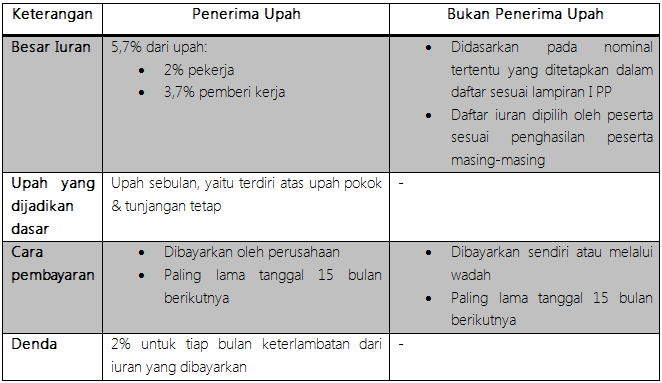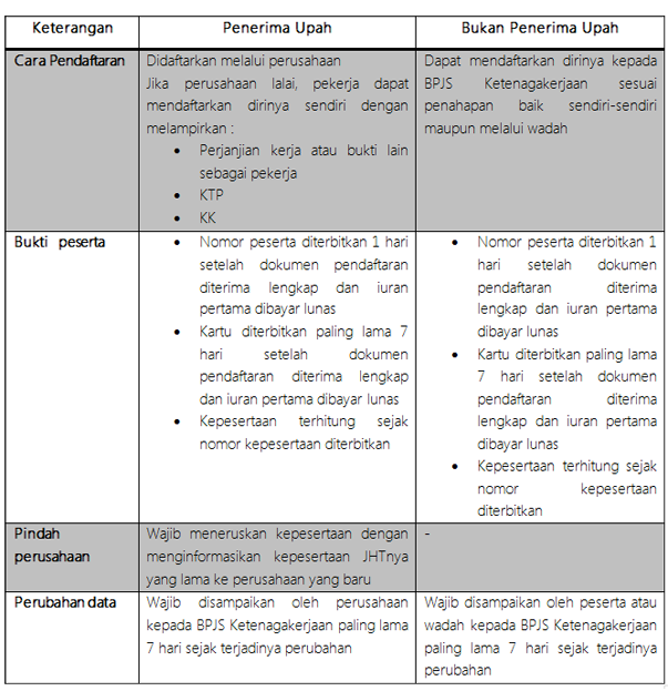Yang dimaksud usia pensiun termasuk peserta yang berhenti bekerja karena mengundurkan diri, terkena PHK dan sedang tidak aktif bekerja; atau peserta yang meninggalkan wilayah Indonesia untuk selamanya. Hasil pengembangan JHT paling sedikit sebesar rata-rata bunga deposito counter rate bank pemerintah.
