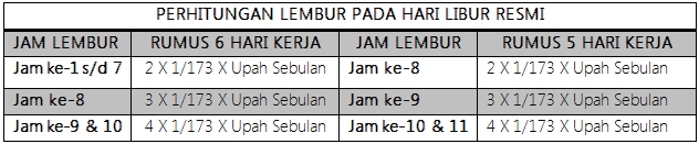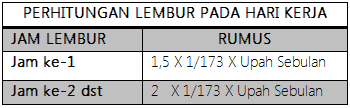 3. Cara perhitungan upah lembur adalah sebagai berikut: