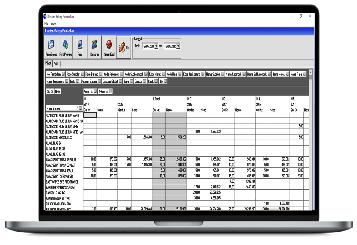Menu Report Deluxe System digunakan untuk keperluan cetak-mencetak, melihat laporan-laporan mengenai transaksi pembelian, pelunasan, penjualan, hutang, setoran, dan laporan lainnya dengan berbagai kelompok dantaranya berdasarkan pertanggal, perbulan, pertahun, persupplyer, dan lainnya.