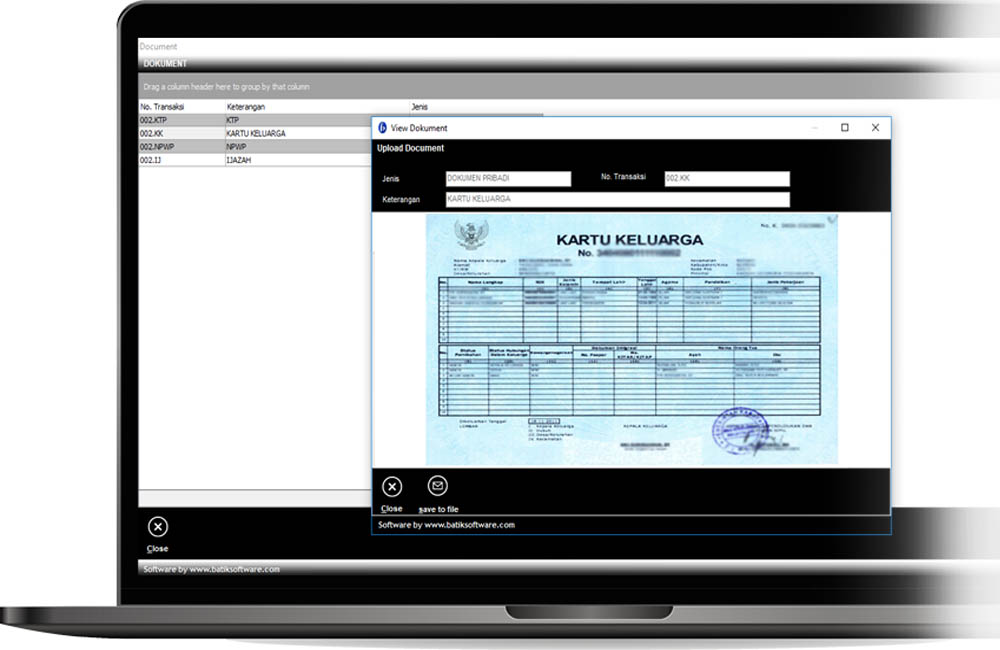 Batik Profesional memiliki fitur penyimpanan dokumen seperti KTP, KK, NPWP, SIM dll. Ini memudahkan Anda dalam mengelola berkas karyawan supaya tidak berantakan. Apabila sewaktu-waktu dokumen tersebut dibutuhkan, dokumen tersebut dapat diunduh kembali.