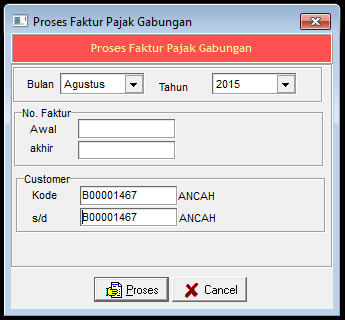 | Kode Faktur | Klik 2x untuk mengambil kode faktur, jika akan memproses semua faktur maka kolom ini kosongkan saja |