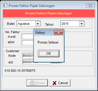 3) Setelah input semua parameter yang dibutuhkan, klik tombol Proses untuk mulai memproses Faktur Pajak Gabungan.