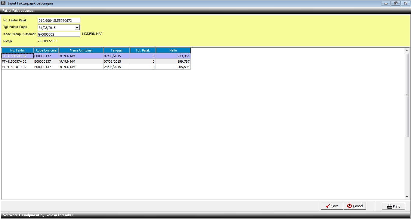 2) Faktur Pajak Gabungan Group Customer yang sudah diinput kemudian dihapus, maka No.Faktur Pajak pada tiap Nota tidak akan terhapus, sehingga harus di hapus satu persatu.
