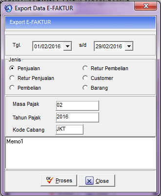| Tanggal | Diisi parameter tanggal faktur yang No.Fakturnya akan diproses |