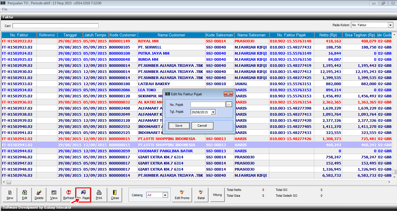 - Pilih No.Faktur yang akan di ubah No.Faktur Pajaknya