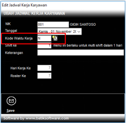 Klik 2x field Kode Waktu Kerja untuk mengubah waktu kerja, kemudian klik Save untuk menyimpan.