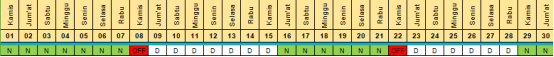 Shift siang = 7, artinya jadwal ditentukan untuk 7 hari pertama adala shitf siang selanjutnya adalah shift malam.