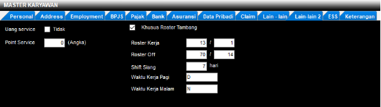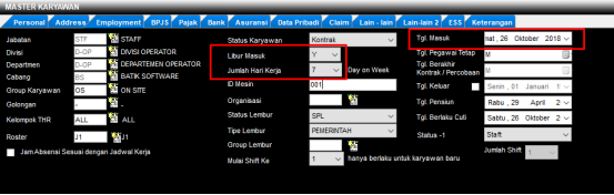 Tgl. Masuk = Diisi tanggal masuk karyawan, ini akan pengaruh terhadap jalannya roster.