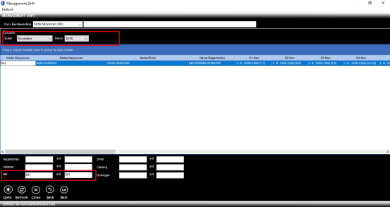 *Pada tampilan management shift diatas pilih tanggal 1 November 2018, kemudia klik2x.