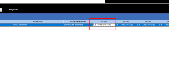 Contoh 1 November 2018 terdapat perubahan waktu kerja Siang ke Malam