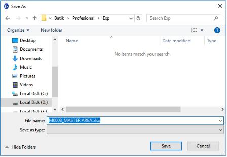 2. Buka template dengan nama M0021_MASTER AREA.xls, nama template ini tidak boleh diubah.