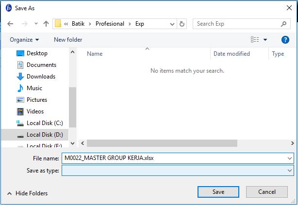 2. Maka muncul jendela untuk menyimpan file export, pilih folder kemudian isi nama file dan extention file kemudian klik Save untuk menyimpan.