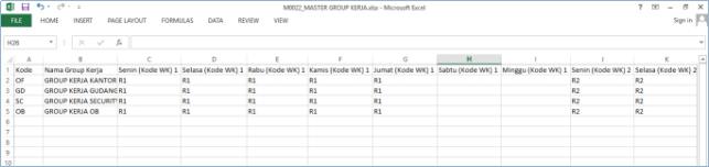 2. Buka template dengan nama M0014_MASTER GROUP KERJA.xls, nama template ini tidak boleh diubah.