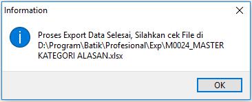 3. Setelah proses export selesai maka akan muncul pemberitahuan sebagai berikut. Klik OK untuk menutup pemberitahuan tersebut.