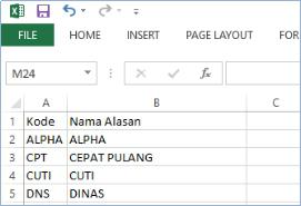 | 1 | Kode Kategori | Diisi kode kategori alasan |