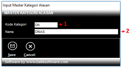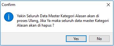 - Data Kategori Alasan tidak boleh dihapus atau diubah kodenya jika sudah dipakai pada menu Alasan.