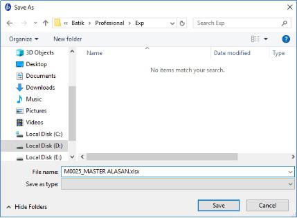 2. Maka muncul jendela untuk menyimpan file export, pilih folder kemudian isi nama file dan extention file kemudian klik Save untuk menyimpan.