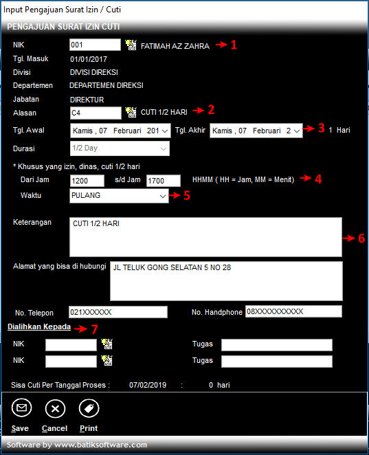 | 6 | Dari Jam s/d Jam | Ini khusus untuk cuti, izin dan dinas 1/2 hari |