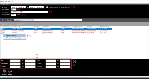 | 5 | Centang Semua/ Hilang Semua Centang | Pilih karyawan yang akan diproses |