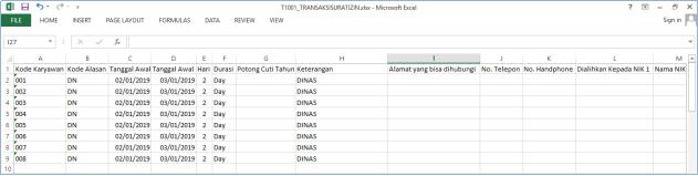 | A | Kode Karyawan | Diisi tanggal awal dan akhir surat izin/cuti |