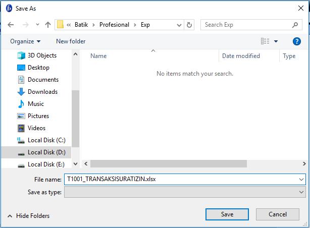 2.Maka muncul jendela untuk menyimpan file export, pilih folder kemudian isi nama file dan extention file kemudian klik Save untuk menyimpan.