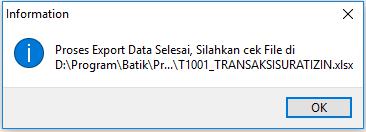 2.Setelah proses export selesai maka akan muncul pemberitahuan sebagai berikut. Klik OK untuk menutup pemberitahuan tersebut.