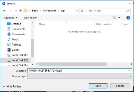 2. Maka muncul jendela untuk menyimpan file export, pilih folder kemudian isi nama file dan extention file kemudian klik Save untuk menyimpan.