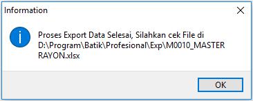 3. Setelah proses export selesai maka akan muncul pemberitahuan sebagai berikut. Klik OK untuk menutup pemberitahuan tersebut.