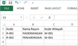 | A | Kode Rayon | Diisi kode Rayon maksimal 10 karakter |