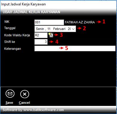 | 3 | Kode Waktu Kerja | Klik 2x untuk mengambil kode waktu kerja sesuai yang dijadwalkan |