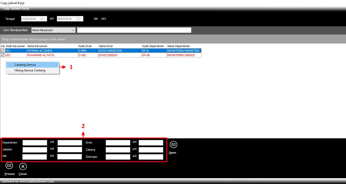 | 2 | NIK/Divisi/Departemen | Klik 2x untuk mengambil kode NIK/Divisi/Departemen yang akan ditampilkan |