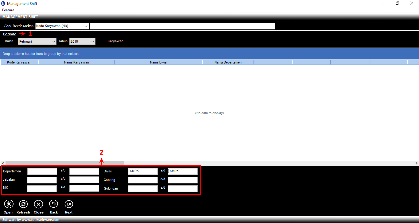 | 1 | Periode | Input parameter periode yang akan dilihat management shiftnya |