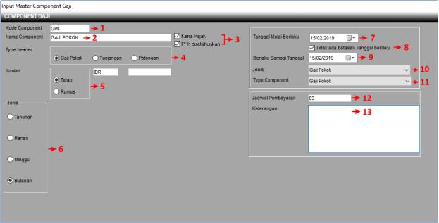 | 6 | Jenis | Pilih jenis pembayaran component Tahunan/Harian/Mingguan/Bulanan |