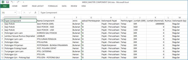 2.Buka template dengan nama M0032_MASTER COMPONENT GAJI.xlsx, *) nama template ini tidak boleh diubah.