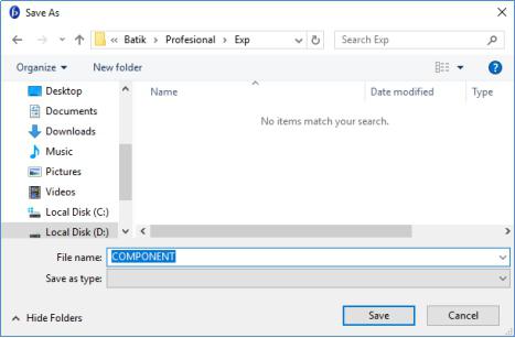2. Maka muncul jendela untuk menyimpan file export, pilih folder kemudian isi nama file dan extention file kemudian klik Save untuk menyimpan.
