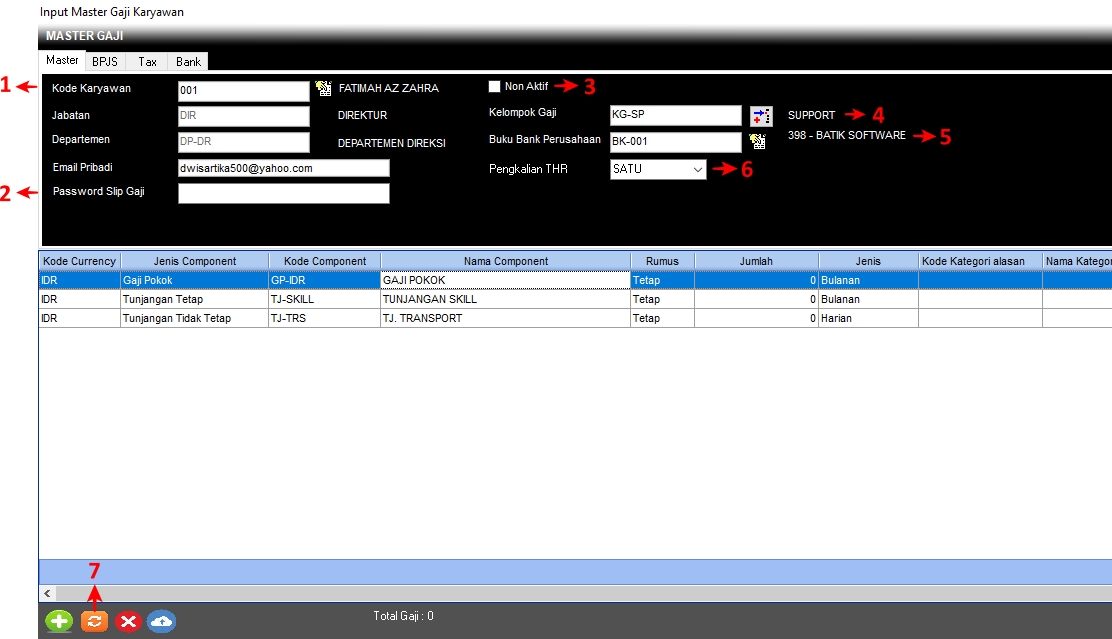 | 3 | Non Aktif | Klik untuk menonaktifkan master gaji karyawan |