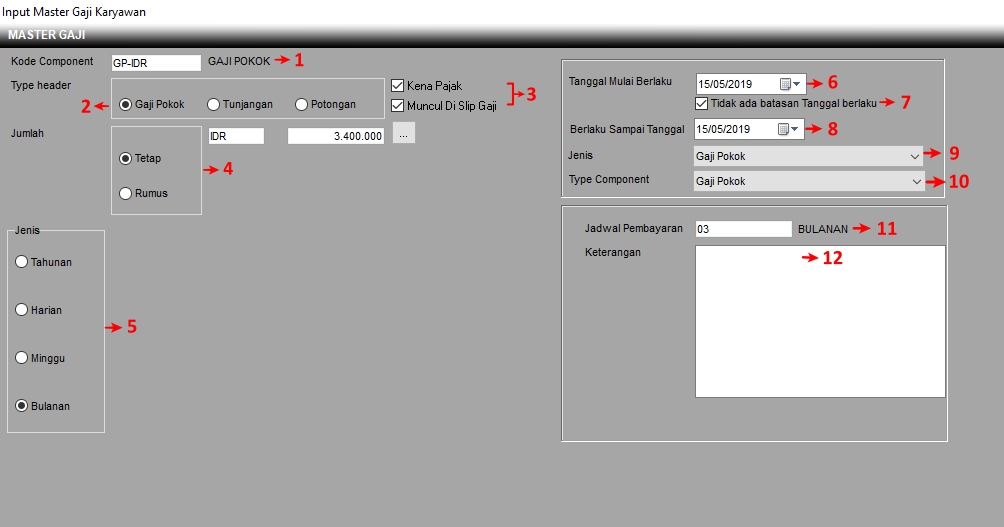 | 5 | Jenis | Pilih jenis pembayaran component Tahunan/Harian/Mingguan/Bulanan |