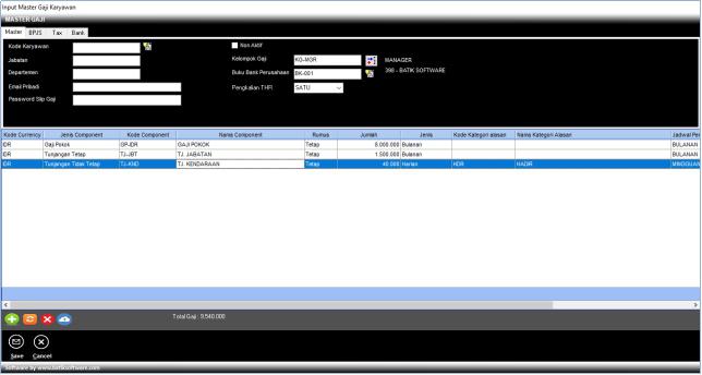 2. Maka akan muncul form Input Master Gaji Karyawan dengan data gaji detail sudah terisi, sehingga jenis user hanya input data karyawan saja.