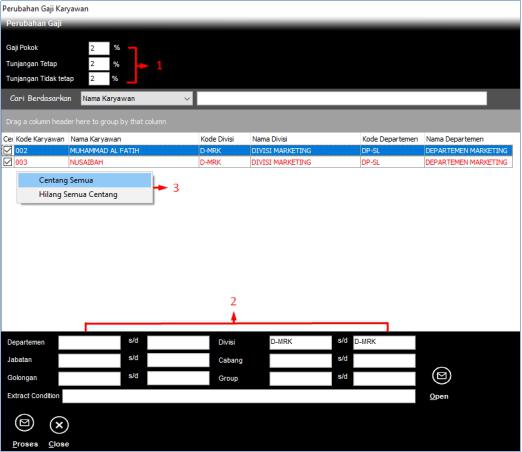 1. Klik kanan grid Gaji Karyawan, pilih Perubahan Gaji.