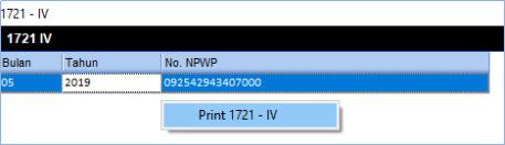 4. Untuk mencetak laporan, pilih 1721-IV yang akan dicetak kemudian klik kanan pilih cetak 1721-IV.