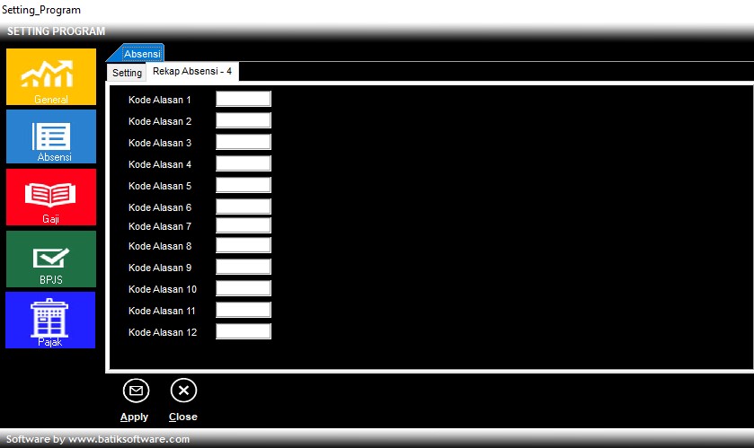 1. Buka Modul Master -> Setting Program, maka akan jendela Setting Program yang berisi beberapa submenu yaitu.