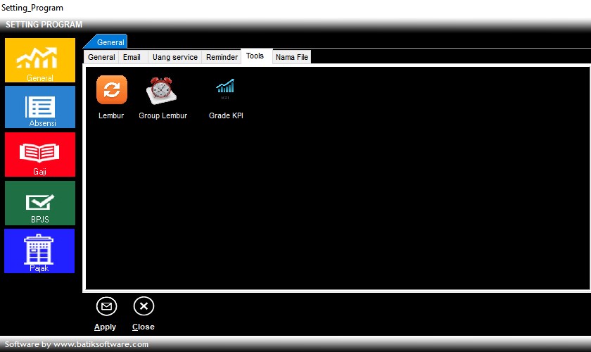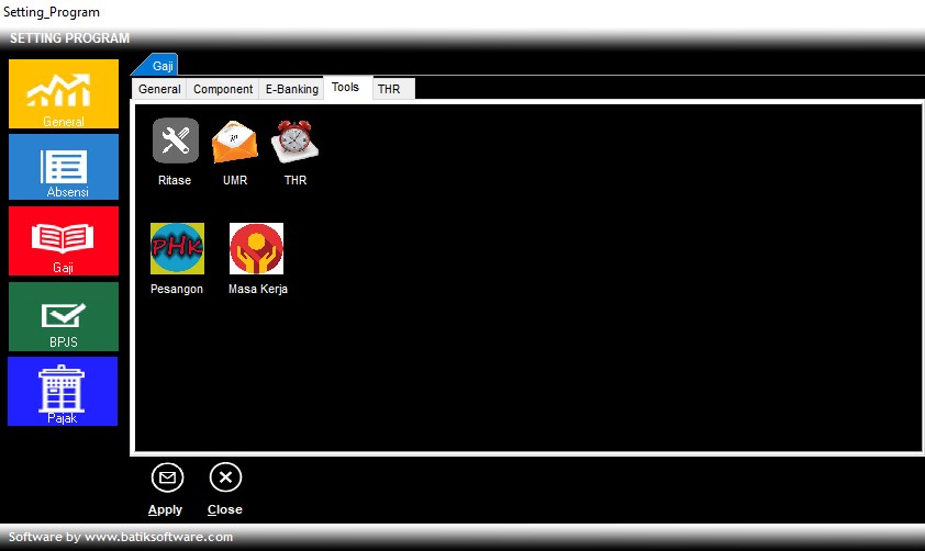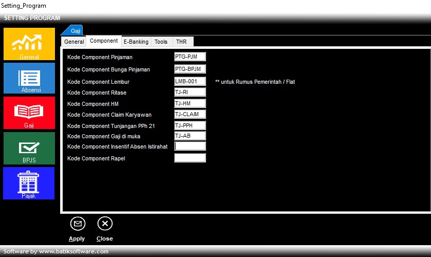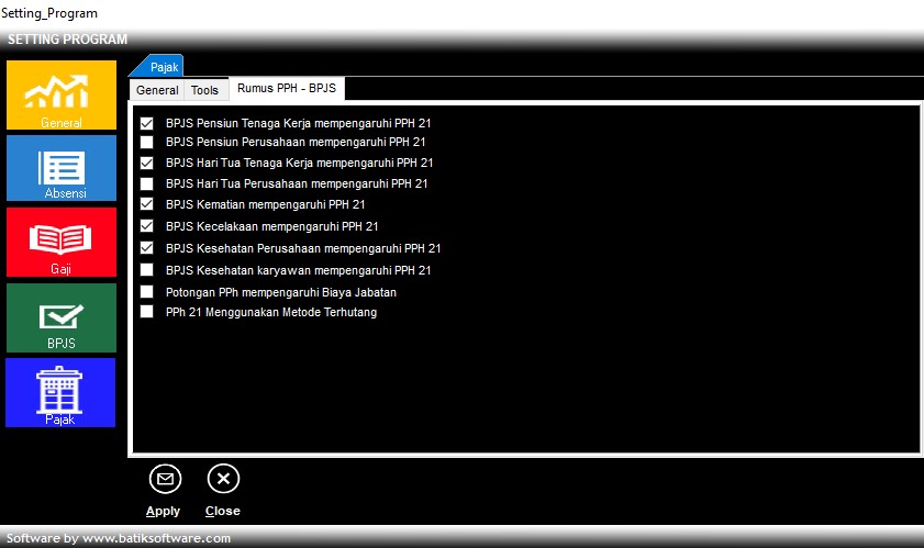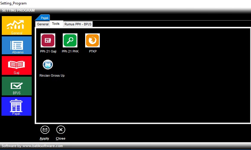 Menu ini digunakan untuk melakukan pengaturan terhadap program baik terkait dengan gaji, pajak, BPJS maupun service charge.