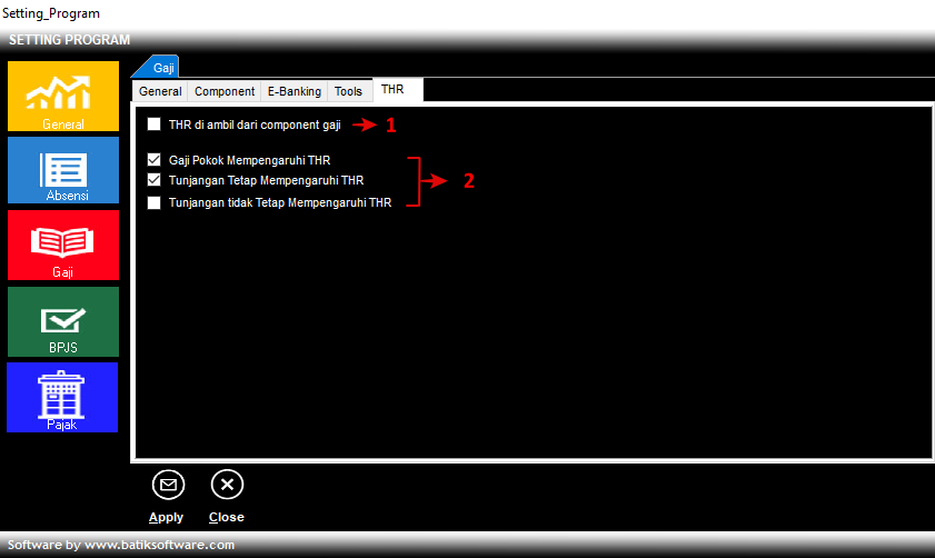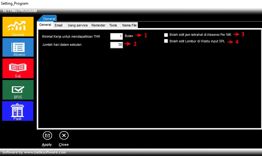 | 1 | Minimal Kerja untuk mendapatkan THR | Diisi minimal lama kerja karyawan dalam bulan untuk mendapatkan THR |