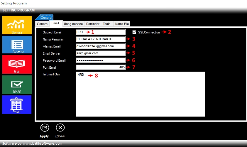 | 4 | Alamat E-mail | Diisi alamat e-mail pengirim slip gaji |