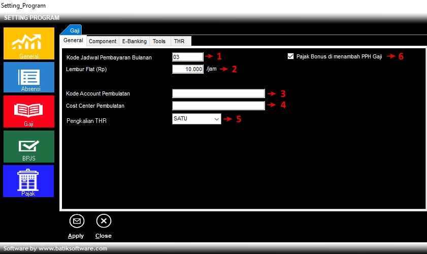| 6 | Account PPh 21 | Diisi kode perkiraan untuk menampung nilai PPh 21 untuk Export Jurnal Gaji |
