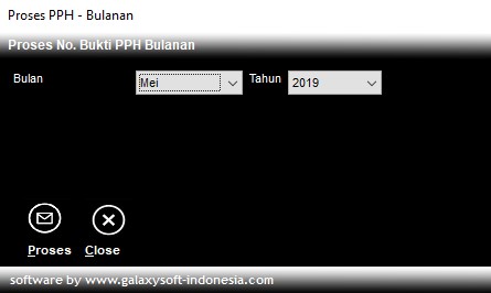 2. Muncul tampilan form Proses No. Bukti PPH Bulanan, pilih bulan dan tahun.