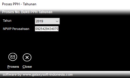 1. Buka Modul Gaji -> Proses Gaji -> Proses Bukti Potong Tahunan, maka akan tampil jendela sebagai berikut.