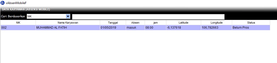 2. Setelah parameter diisi maka klik tombol Open untuk membukanya. Maka akan tampil absensi mobile karyawan sebagai berikut.