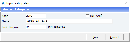 Kabupaten merupakan hierarki regional setelah propinsi, nantinya data kabupaten ini akan dipakai pada menu kecamatan.