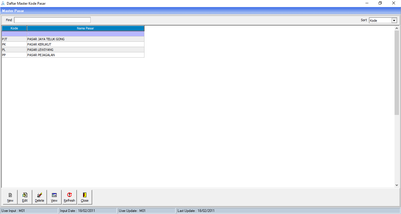 Pasar merupakan hierarki terkecil regional , nantinya data pasar ini akan dipakai pada menu customer untuk menentukan regional masing-masing customer.